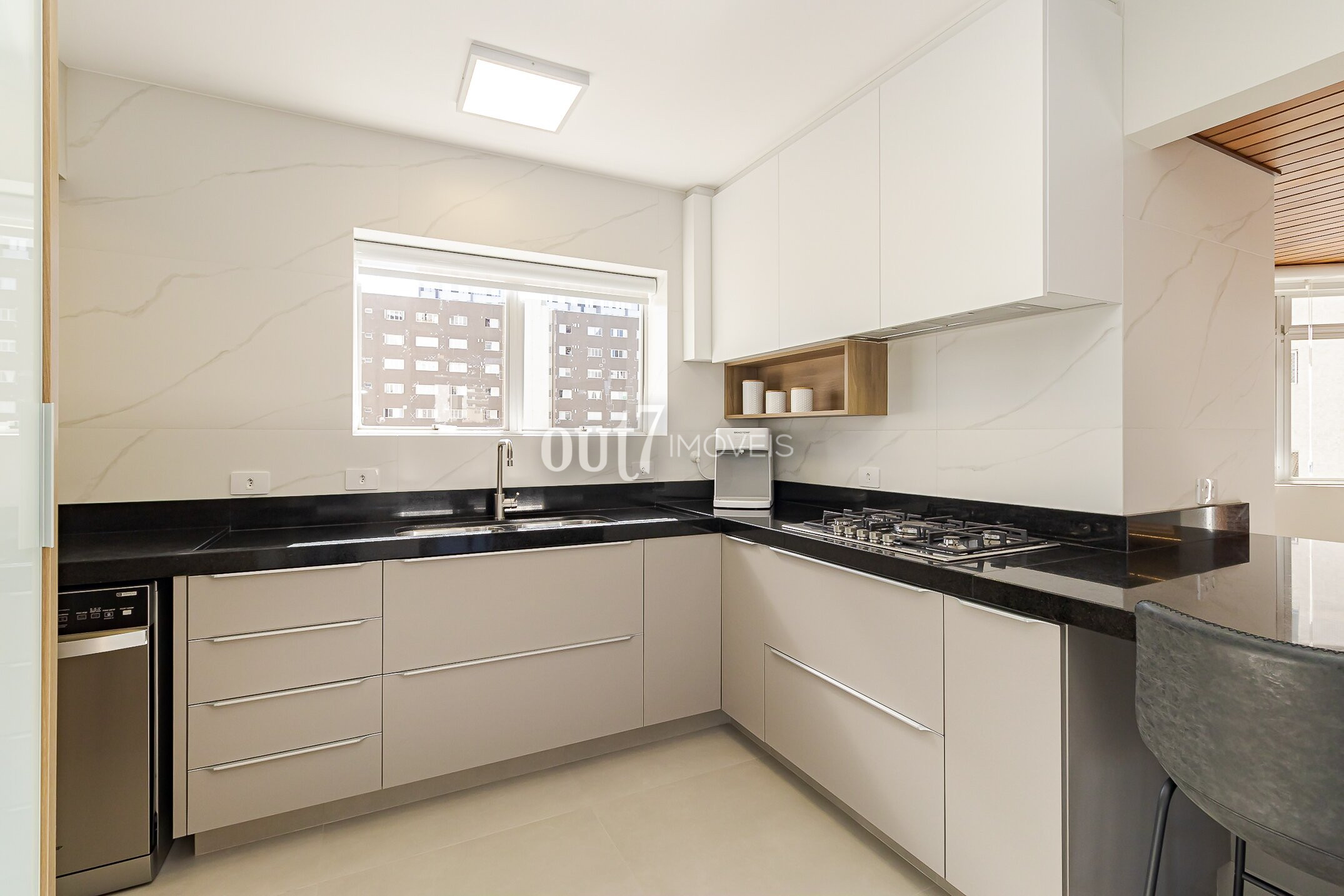 A cozinha é equipada com marcenaria sob medida e conta com despensa e área de serviço separada (com entrada individual também).