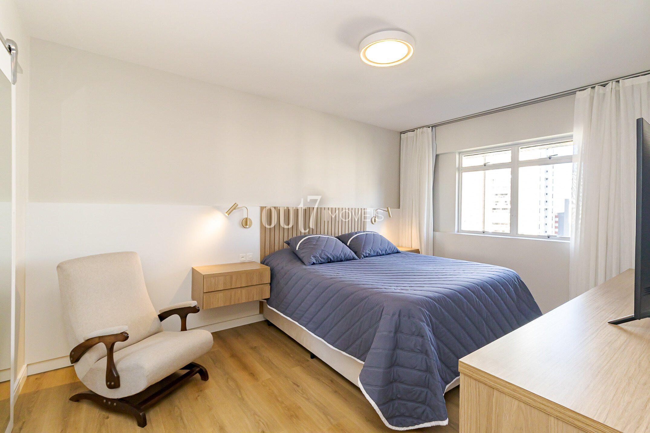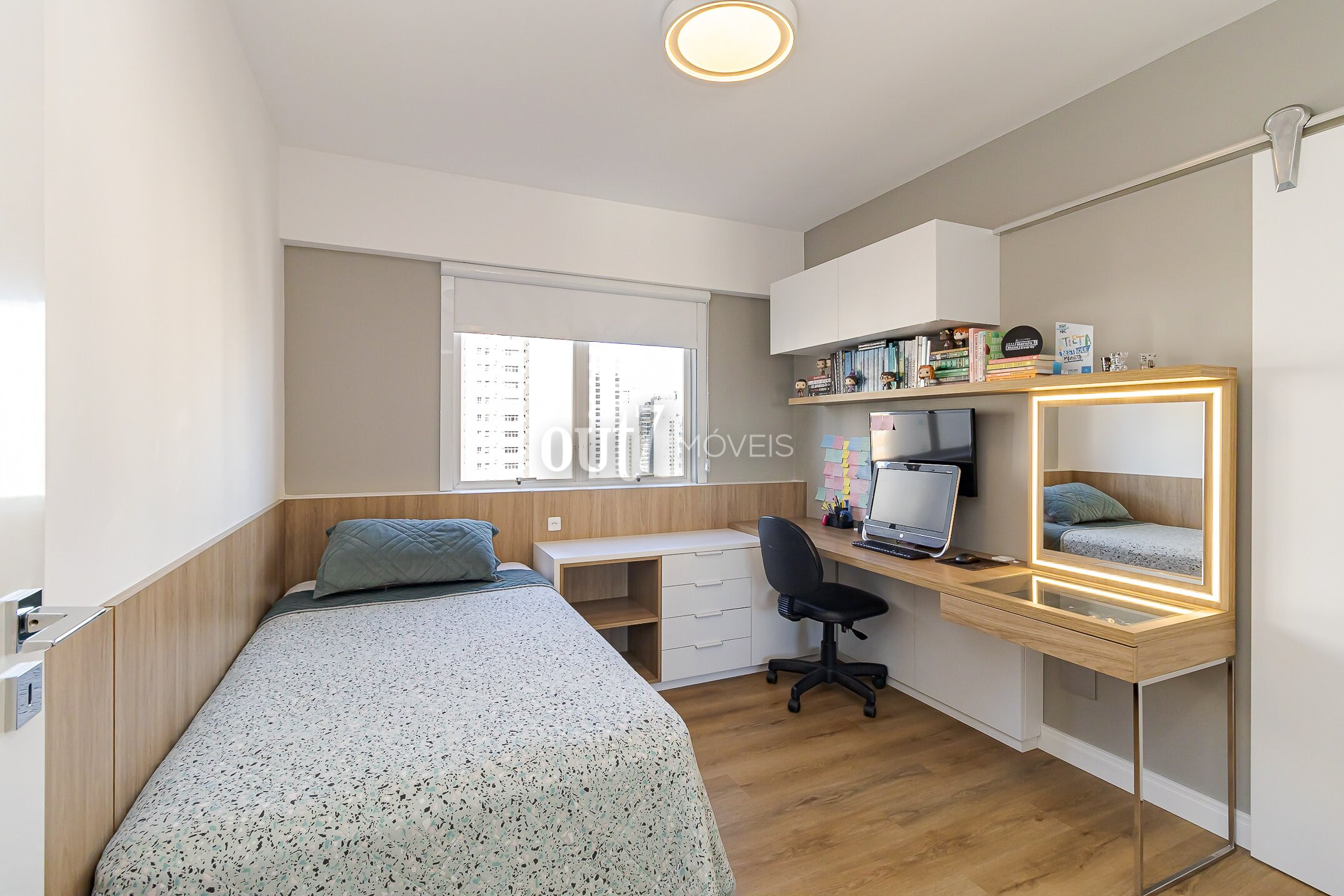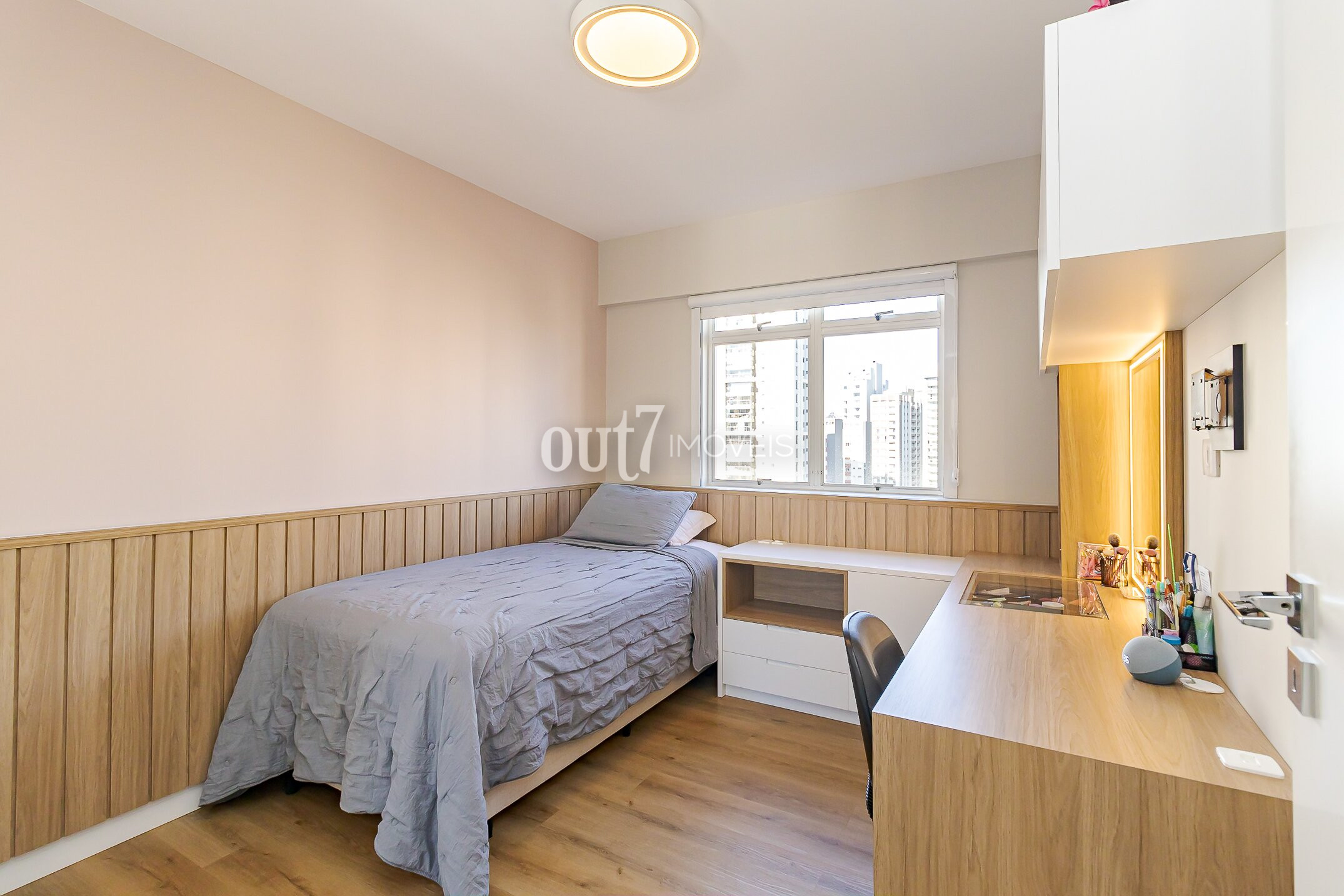 Todos os quartos possuem armários sob medida, e a suíte principal conta com espaço de closet.