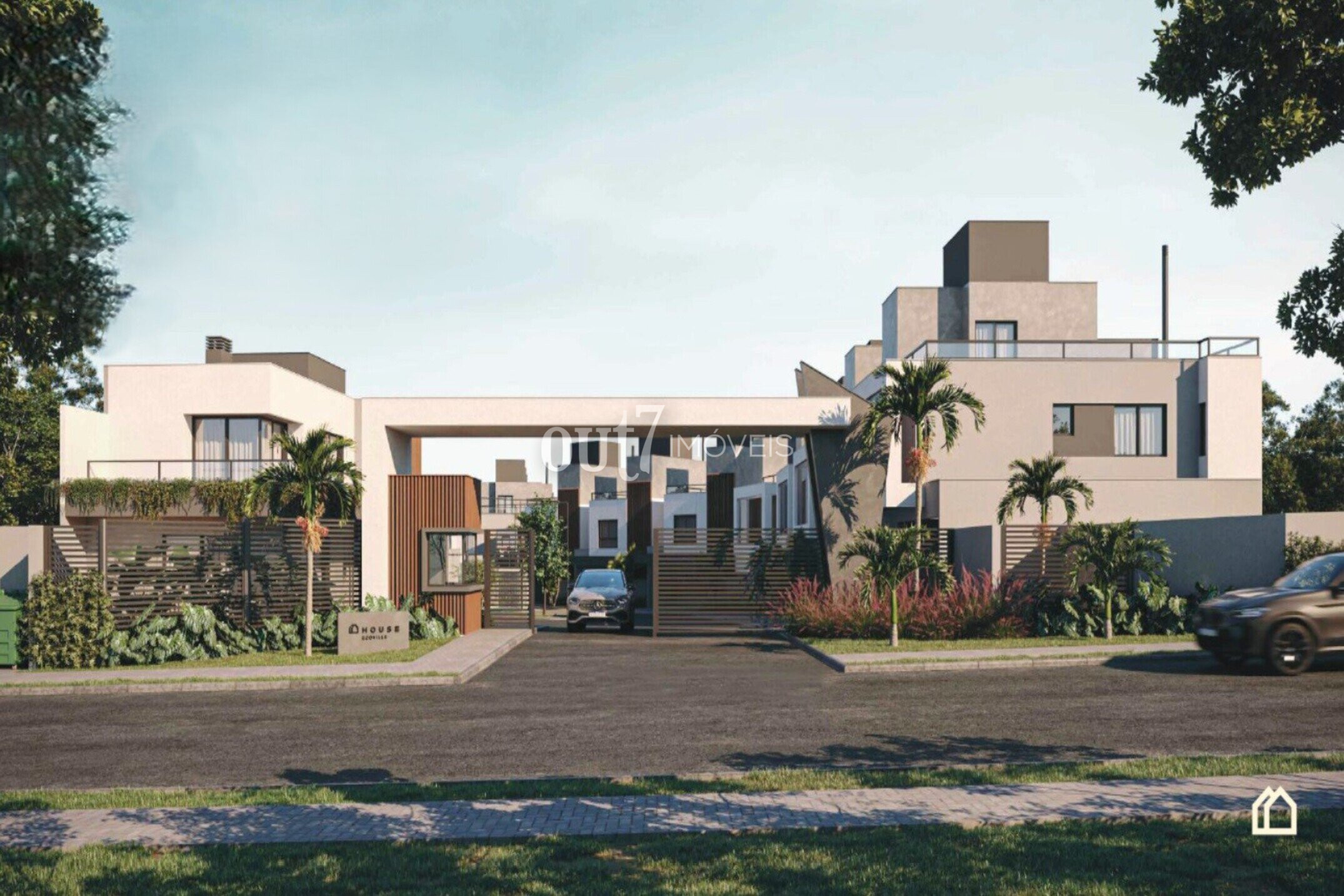 Portaria remota e com guarita, monitoramento por câmeras, sistema de alarme integrado nas casas e vagas para visitantes.